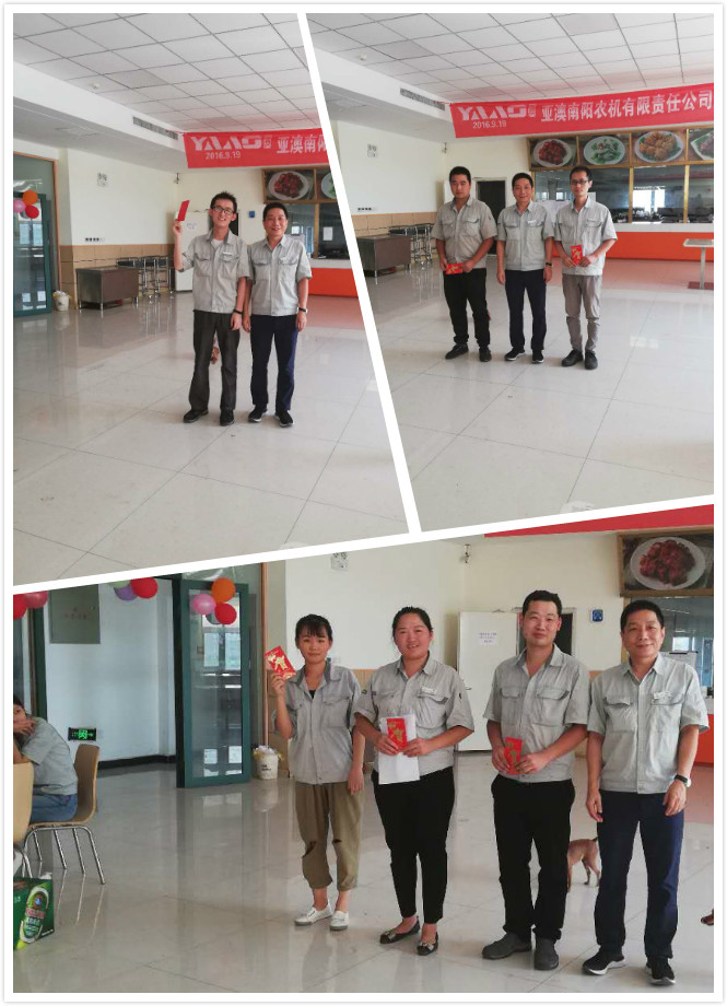 中秋佳節(jié)至,周年慶歡喜。2018923日,亞澳南陽(yáng)農(nóng)機(jī)有限責(zé)任公司開(kāi)業(yè)兩周年慶典暨歡度中秋佳節(jié)活動(dòng)在公司餐廳隆重舉行,因當(dāng)天有生產(chǎn)任務(wù),在不耽誤生產(chǎn)及各部門班組的全力配合下,慶典活動(dòng)在中午12:00順利開(kāi)始。