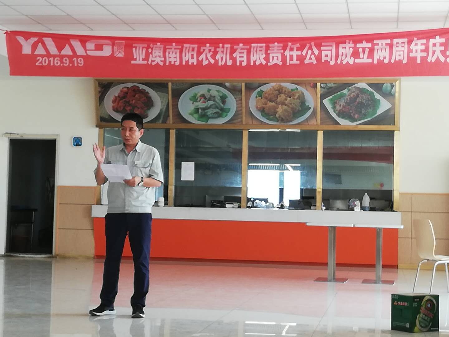 公司領(lǐng)導(dǎo)層、全體員工參加了慶典, 共同慶祝亞澳農(nóng)機(jī)成立開(kāi)產(chǎn)兩周年。