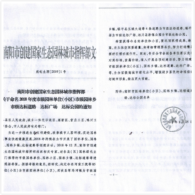 近日,南陽(yáng)市公布了2018年度全市園林式居住區(qū)(單位)評(píng)選結(jié)果,亞澳南陽(yáng)農(nóng)機(jī)有限責(zé)任公司榜上有名,榮獲市級(jí)“園林式單位”榮譽(yù)稱號(hào)。