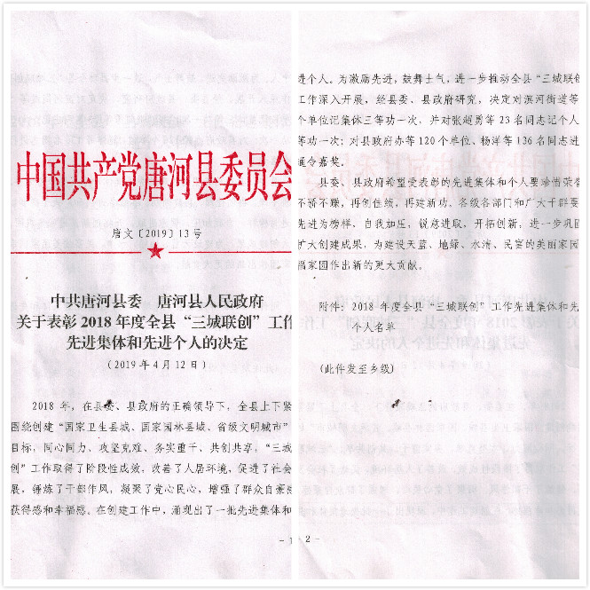 2018年,我公司緊緊圍繞創(chuàng)建“國家衛(wèi)生縣城、國家園林縣城、省級文明城市”的目標(biāo),上下一心,做好廠區(qū)環(huán)境整頓及綠化建設(shè)。獲得此項榮譽(yù)是縣委縣政府對我們工作的肯定。