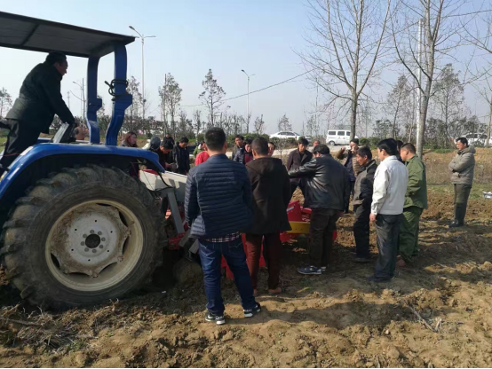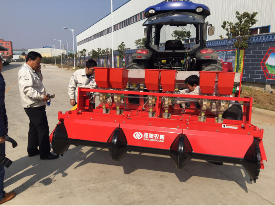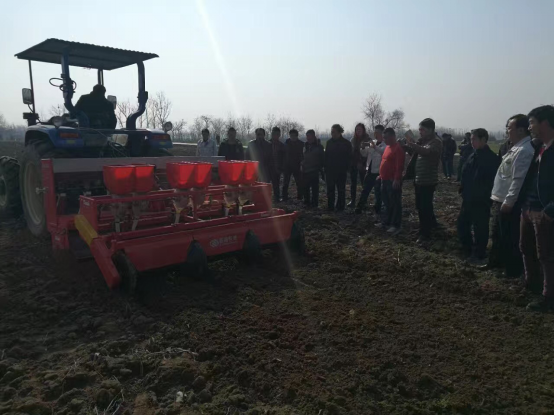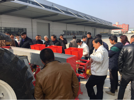 現(xiàn)場會上,亞澳專業(yè)技術(shù)人員及銷售經(jīng)理對我廠新研發(fā)的花生精量播種機(jī)做了詳細(xì)介紹,各鄉(xiāng)鎮(zhèn)社員及各站站長針對花生種植技術(shù)、施肥方法和機(jī)械化播種等方面做了詳細(xì)講解。隨后,60名用戶和農(nóng)技人員一同觀摩了機(jī)械化播種演示。