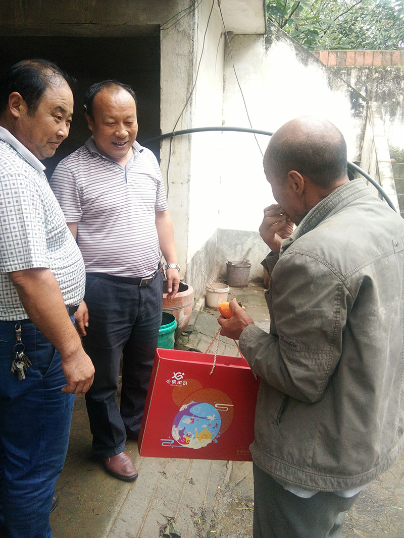 淫雨霏霏,在國慶、中秋雙節(jié)來臨之前,2017年9月25日下午,亞澳南陽農(nóng)機有限公司總經(jīng)理助理郭靖懷著滿滿的熱情與關(guān)懷,帶著月餅禮盒,再次來到大河屯鎮(zhèn)申沖村開展扶貧慰問工作。