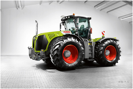 3、科樂收XERION系列剛剛上市的時候售價高達100萬美金。這款采用無級變速的拖拉機采用卡特彼勒 C13 6 缸發(fā)動機,最大功率可達 401–487 馬力,最高時速可達50公里/小時。